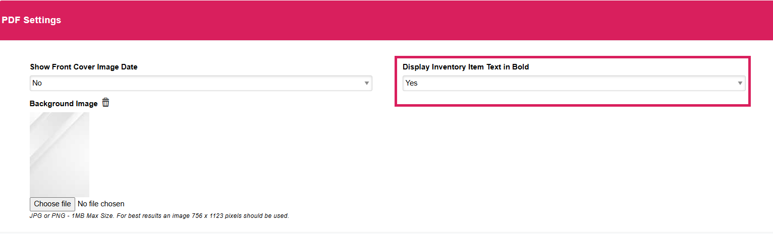Select yes in the 'Display Inventory Item Text in Bold' drop-down.