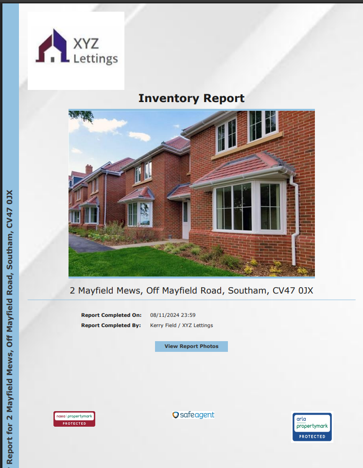 You can choose to set an image to be displayed on the front cover of a particular report type. This is particularly useful if you're compiling a report where you haven't yet attended the property i.e., Landlord Fact Find Report.