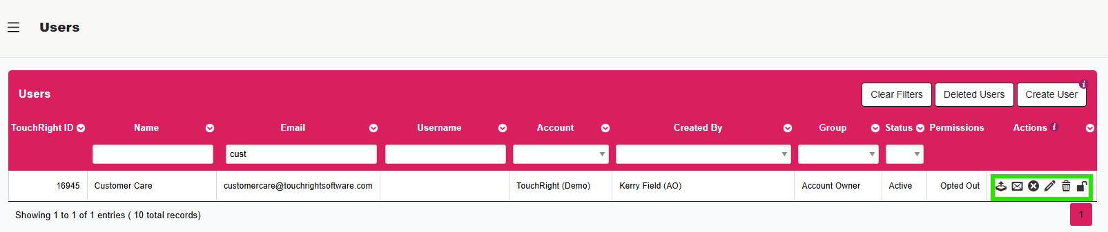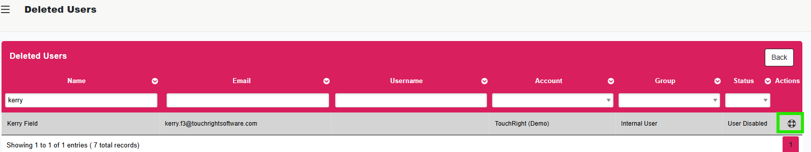 In the new window you will then have the option to select the 'Recover User' button located on the right hand side of the user.