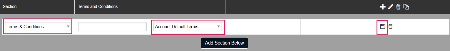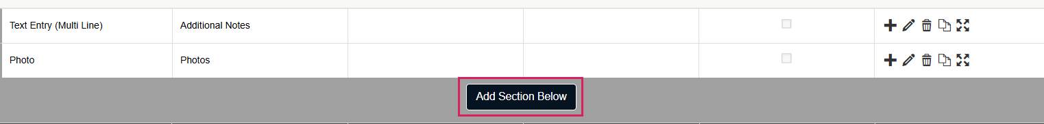 Once you have a report open you can click the 'Add Section Below' in the relevant area you wish the terms and conditions to appear then type in a section name e.g., 'Notes' in the box provided.