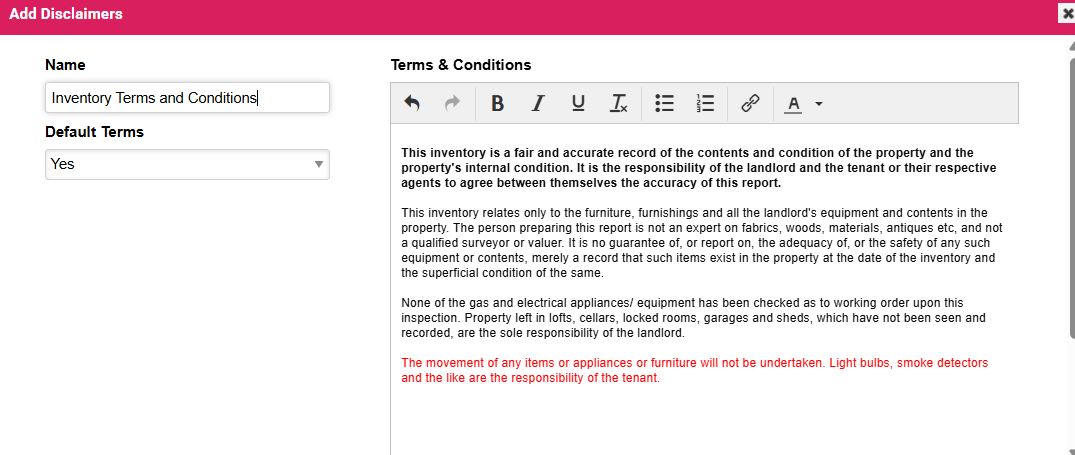Click the 'Add Disclaimers' button on the right hand side Disclaimers grey banner.