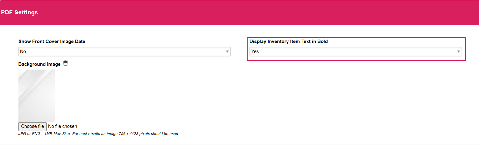 Select yes in the 'Display Inventory Item Text in Bold' drop-down.