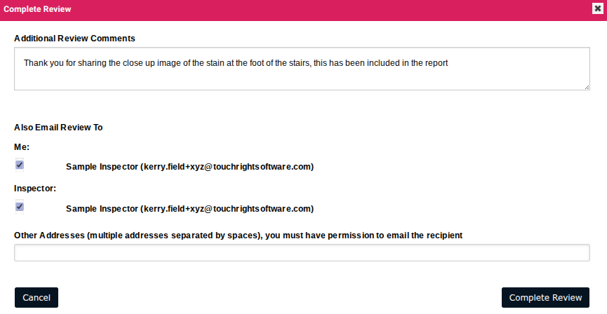 Remote Comments can be sent for inventories, check-outs, inspections, and other supported report types.