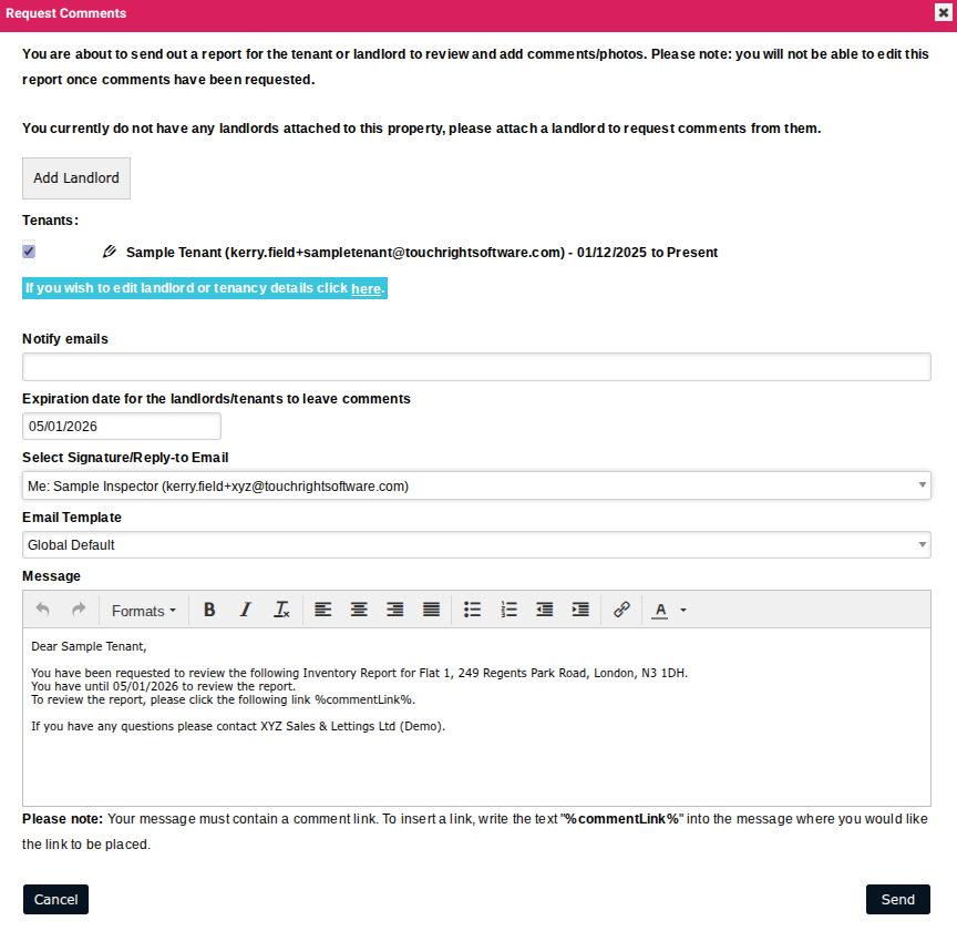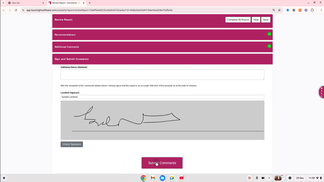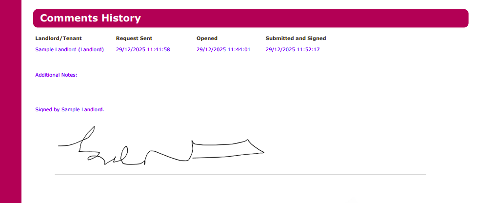 Remote Comments allow tenants or landlords to review a report digitally, add comments where needed, upload supporting photos, and sign to confirm accuracy, without the need to attend the inspection in person.